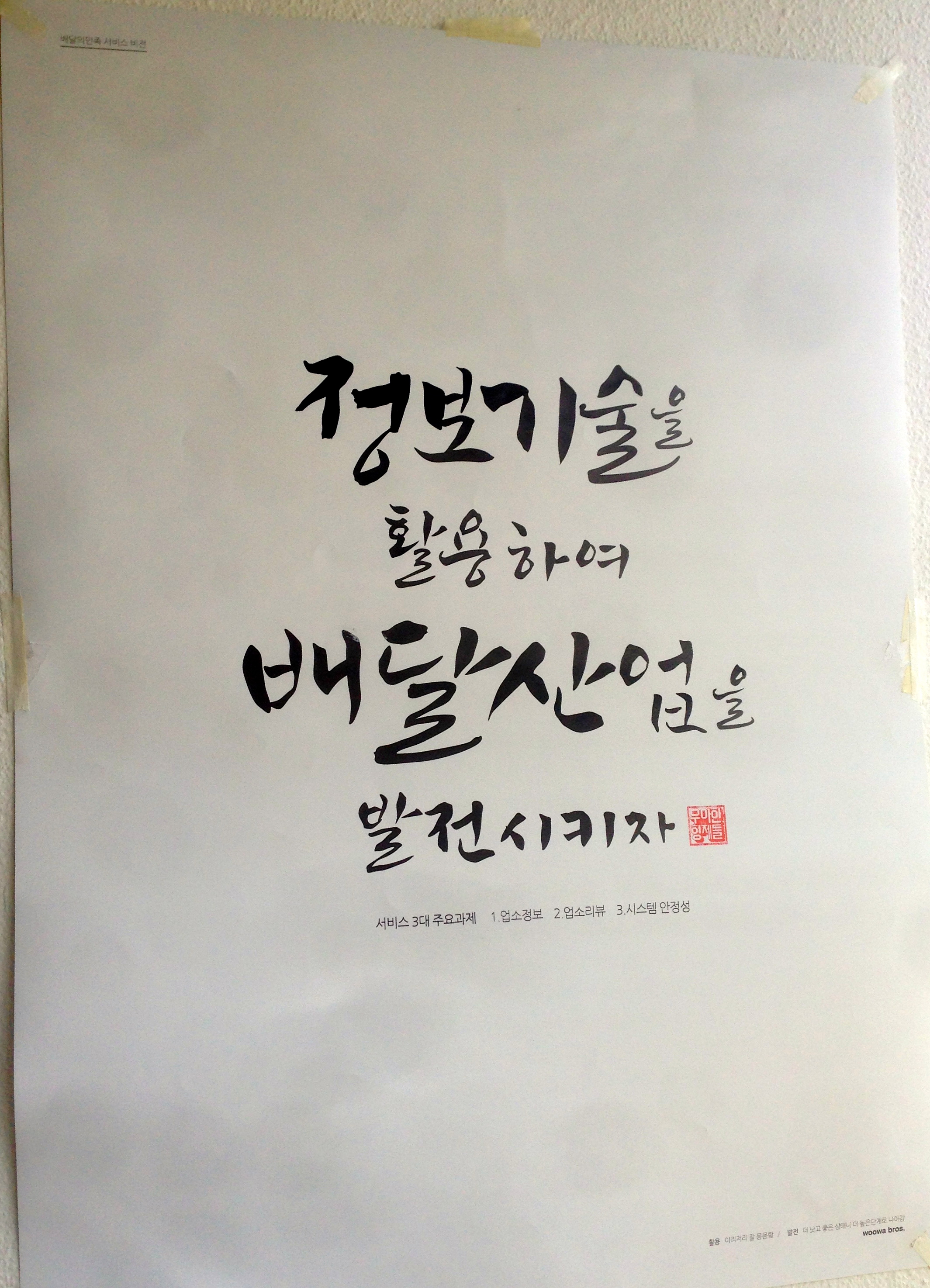 “정보기술을 활용하여 배달산업을 발전시키자”. 단순하고 이해하기 쉬운 회사의 비전 포스터가 인상적이다. 쉽고 명확하게 만들기!