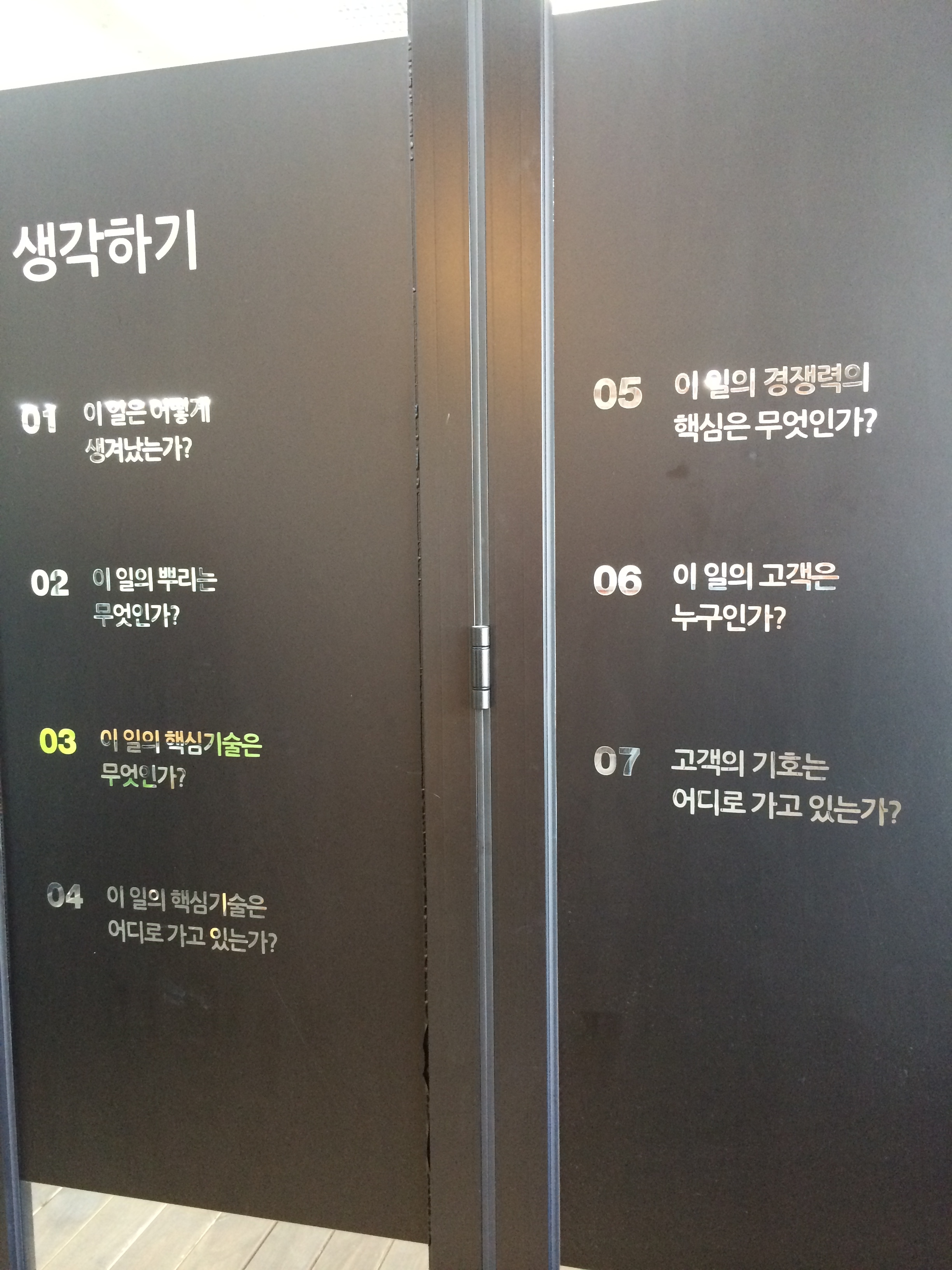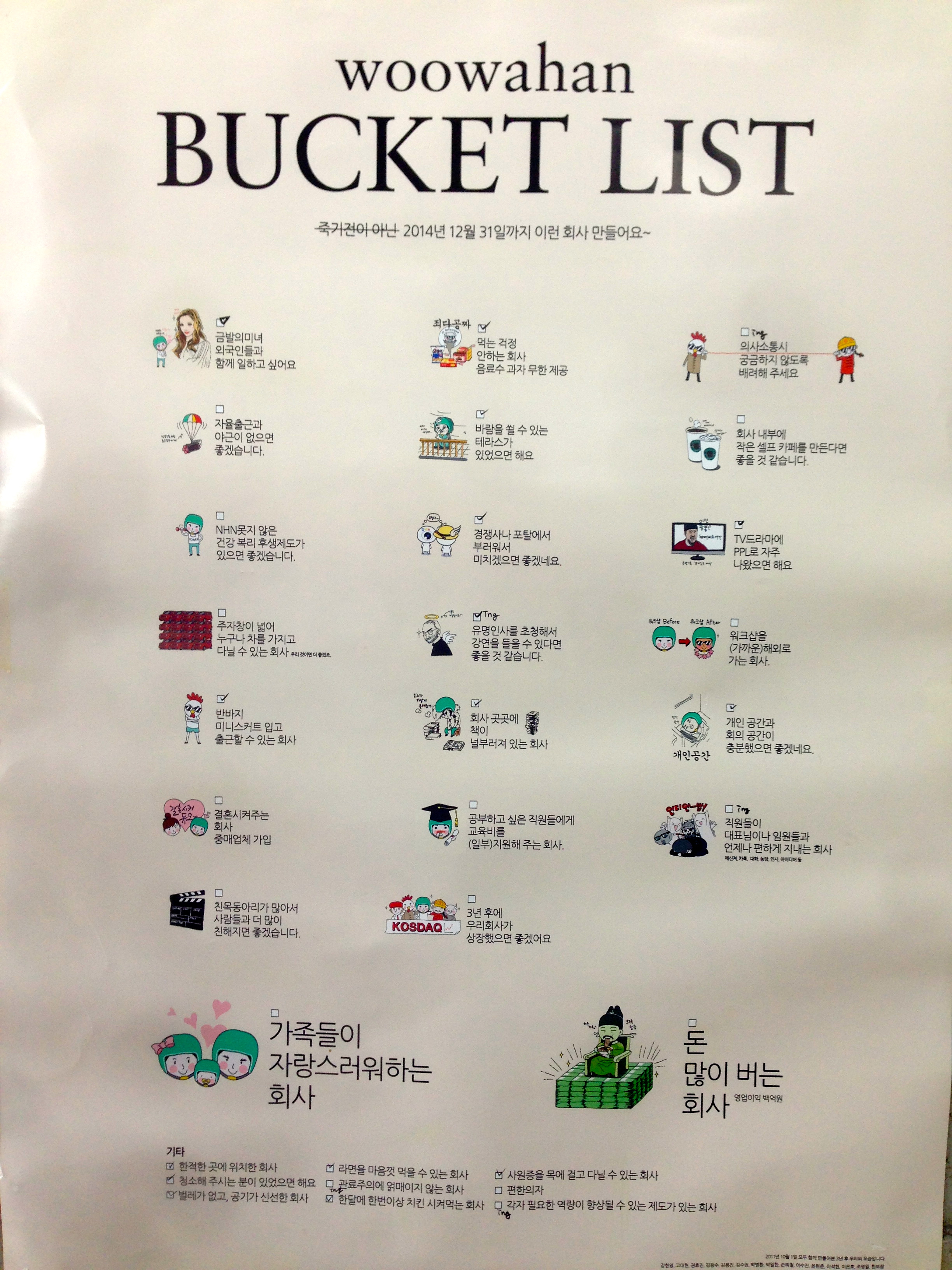 버킷리스트가 가장 인상적이었다. 어려운 말 쓰지 않고 단도직입적이고 솔직하고 소박한 메시지가 멋졌다. 하나하나 읽어보시길. “가족들이 자랑스러워 하면서도 돈 많이 주는 회사”. 누구나 이런 곳에 다니길 원하지 않을까? (클릭하면 확대되므로 관심이 있으신 분들은 자세히 보시길.)