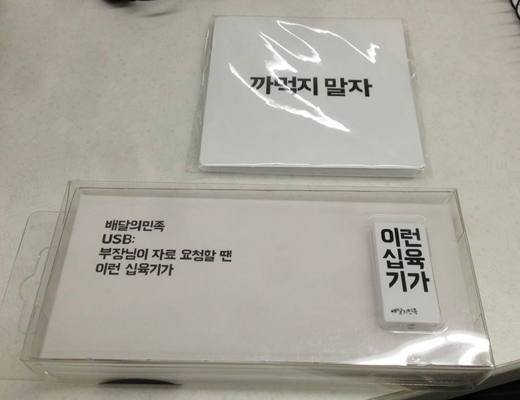 폭소를 터뜨리게 만든 것은 기념품으로 받은 USB메모리다. ㅎㅎ 포스트잇에는 “까먹지 말자”라는 까먹기 힘든 문구가 적혀있다.