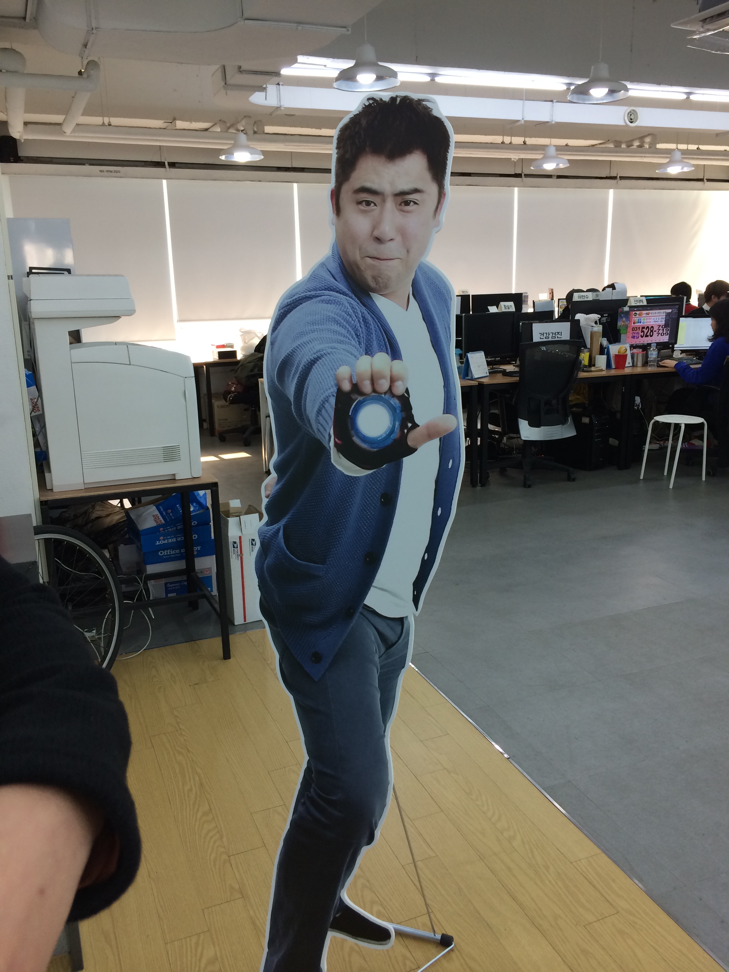 어떤 층 사무실에 들어가면서 이 등신대의 사진과 맞닥뜨려서 깜짝 놀랐다. 직원들의 출입증 사진중 포토제닉상을 받은 것을 확대해서 전시해놨다는 것이다.