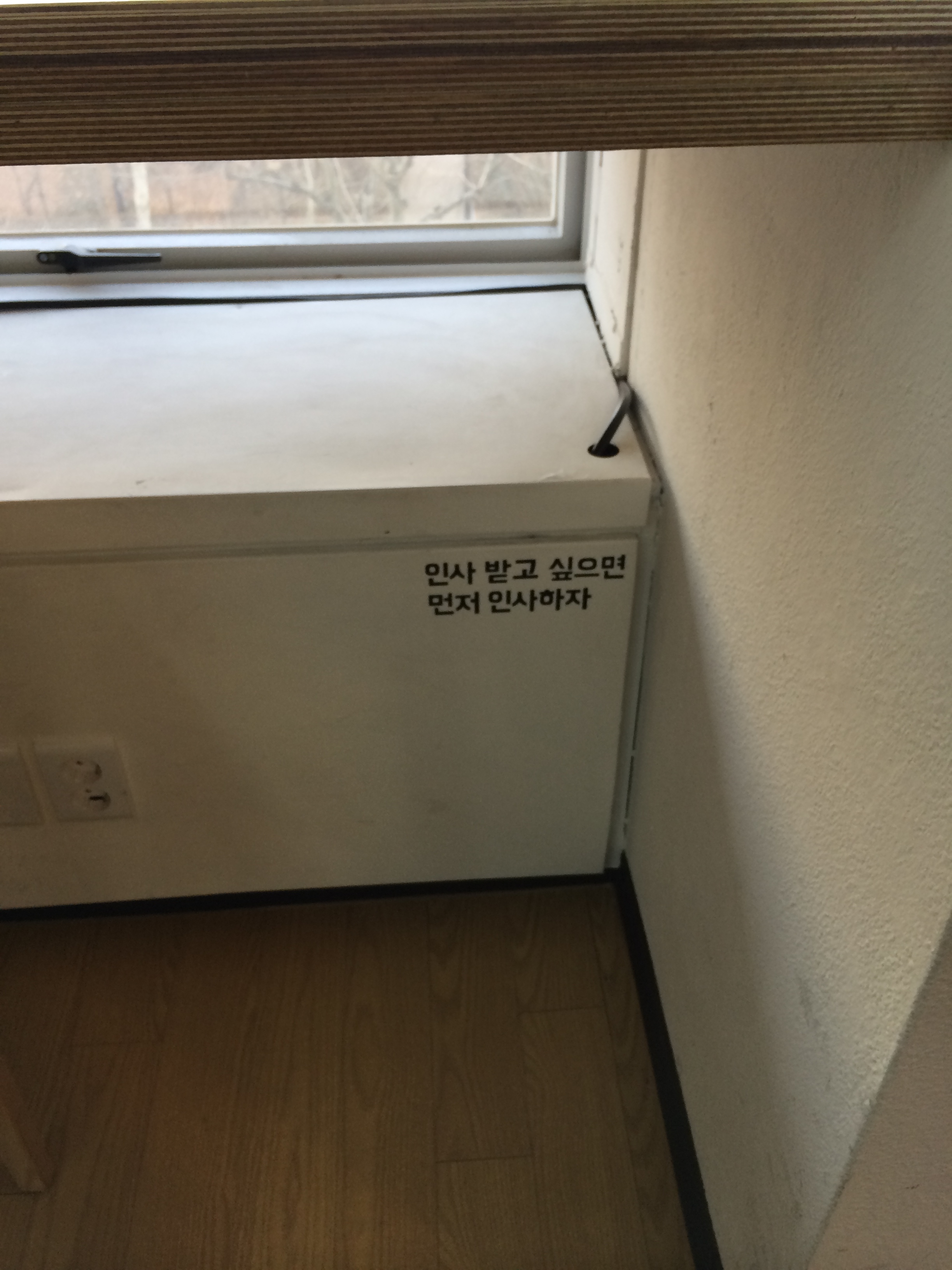 진지한 내용도 있다. 대회의실의 여닫이 문에 쓰여있는 글.
