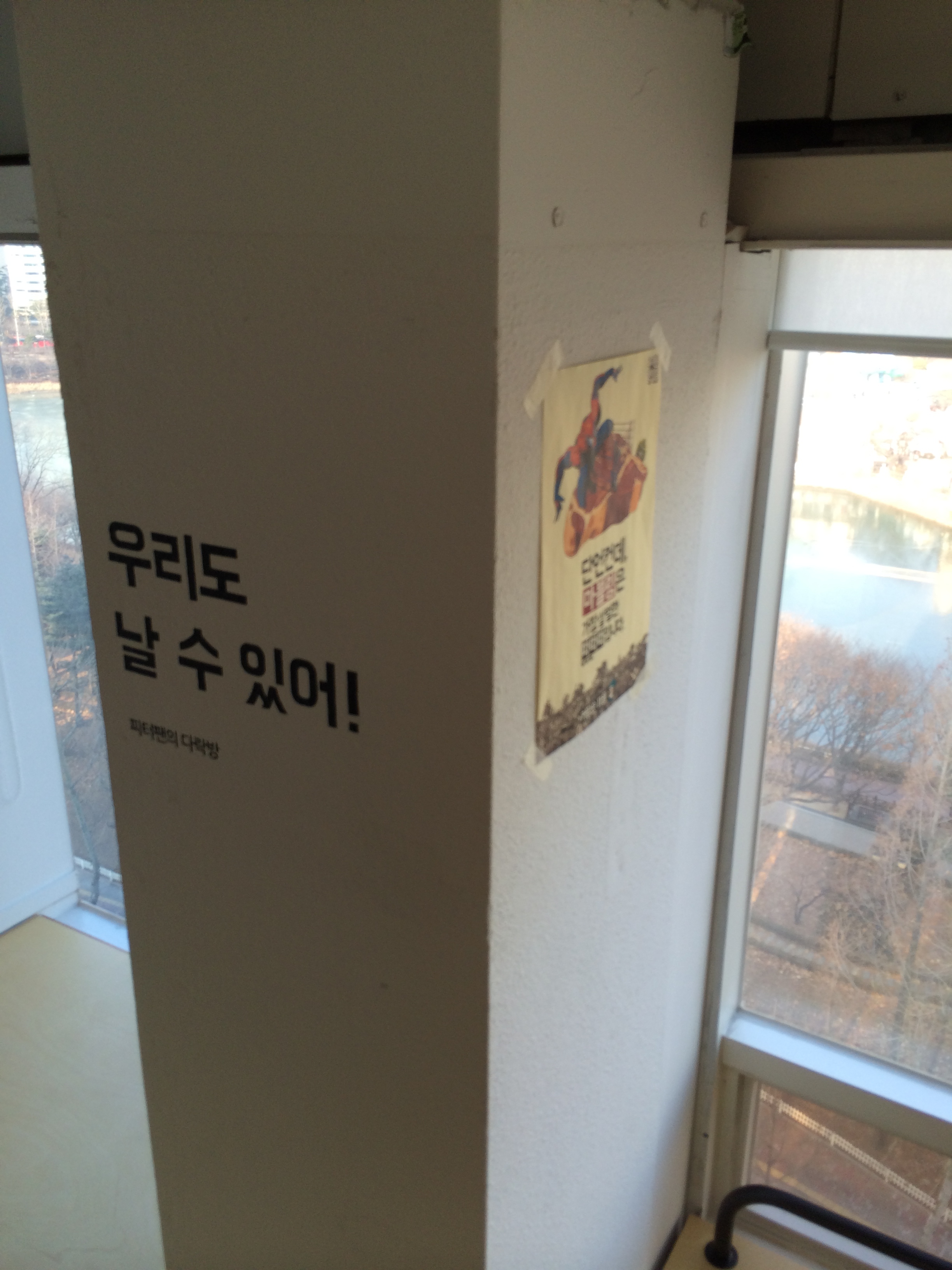 방문 기념사진을 10층의 피터팬홀(?)에서 찍었는데 여기에도 독특한 포스터들이 보인다.