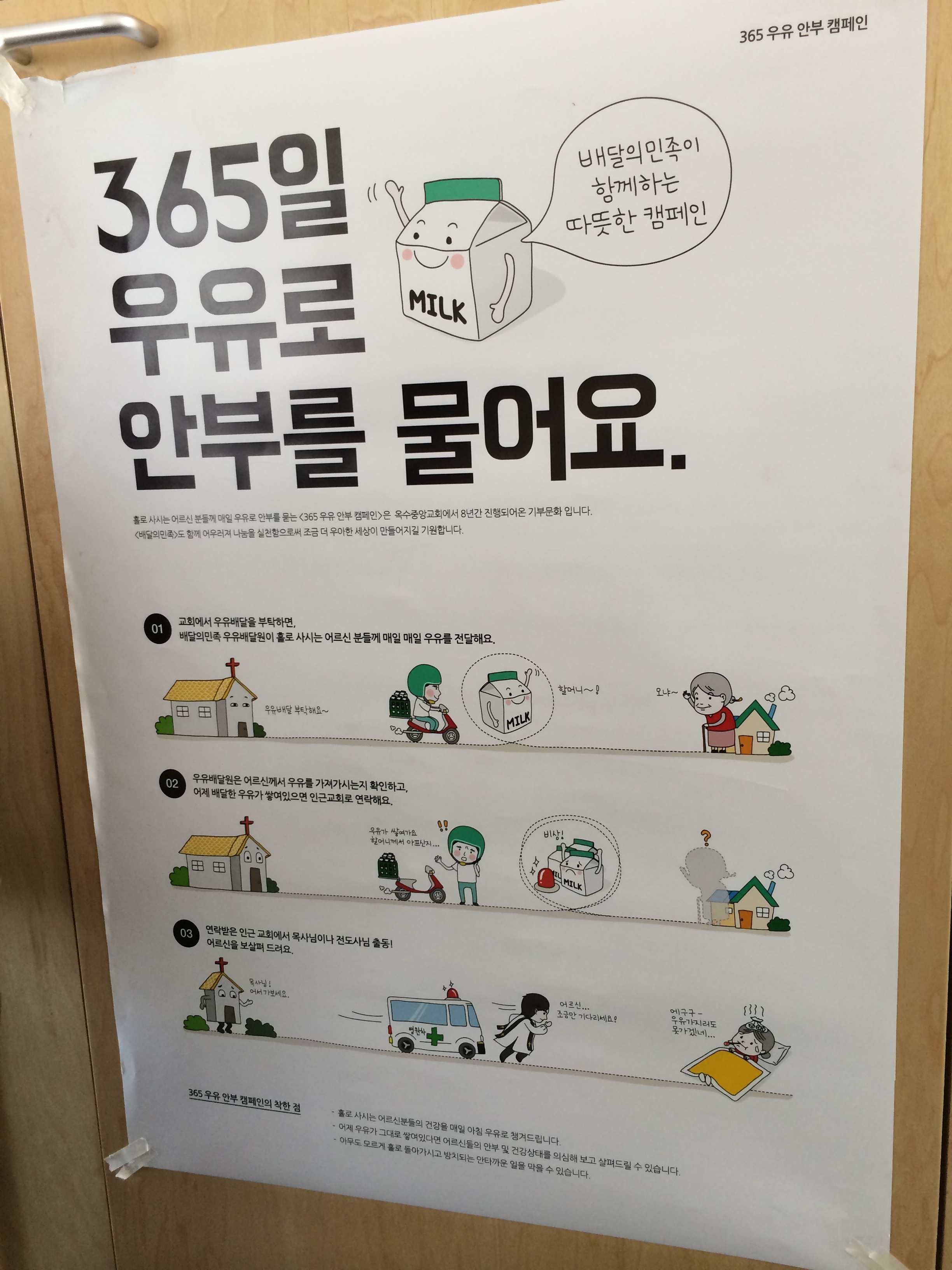 1년여전 우아한 형제들 사무실을 방문했을때 찍어두었던 포스터 사진이다. 이런 좋은 일을 기획하고 꾸준히 실천하고 있다는 것을 알 수 있다.
