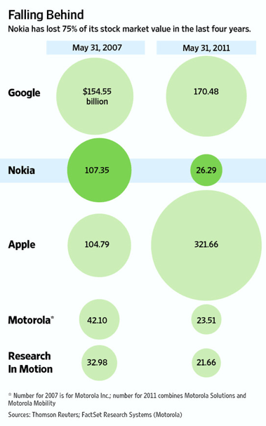 노키아의 몰락이 핀란드경제에 심대한 타격을 주고 있다는 기사는 요즘 심심치 않게 보인다. 6월 3일 WSJ에 실린 Nokia’s Pain Becomes Finland’s(노키아의 고통이 핀란드의 고통이 되고 있다)는 기사가 대표적이다.