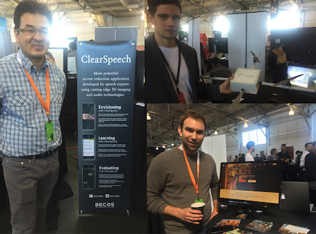 왼쪽은 발음교정앱을 만들어 미국시장에 도전하는 베코스의 강진호대표, 오른쪽위는 태양광셀을 청소하는 드론을 개발한 이집트출신 창업가, 오른쪽 아래는 what3words라는 지도시스템을 개발한 영국출신 창업가.