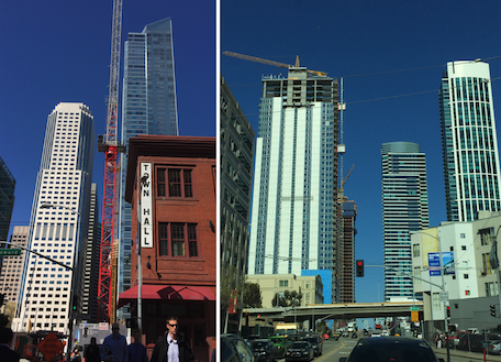 칼트레인을 타고 샌프란시스코로 올라가면서, 공항으로 101고속도로를 타고 가면서, 혹은 샌프란시스코 시내에서 찍은 사진이다. 베이에어리어 전체가 이처럼 건설붐이다. 아직도 실리콘밸리의 호황이 계속되고 있다는 것을 느낄 수 있다. 사무실, 상가, 주택, 호텔 등의 건설이 곳곳에서 이어지고 있다. 애플의 신사옥, 애플파크의 공사가 끝났고, 엔비디아 사옥도 곧 공사가 끝난다. 하지만 구글, 테슬라, 페이스북 등이 계속 회사가 팽창하면서 새 사옥 건설계획을 밝히고 있다. 내가 만난 테슬라분은 인원이 불어나 엄청나게 좁아진 사무실에서 모두 낑겨서 일한다고 할 정도다.