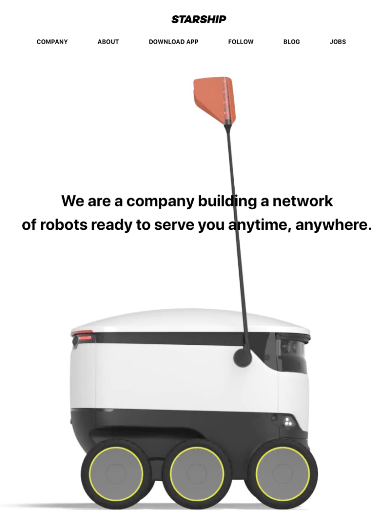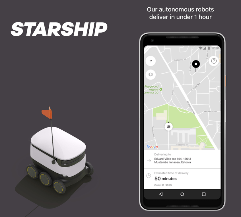 스타십테크놀로지라는 자율주행로봇을 만드는 스타트업이 있다. 에스토니아출신들이 샌프란시스코와 탈린에서 2014년 창업한 회사다. GPS와 카메라를 장착하고 사람이 걸어다니는 인도를 달려서 음식을 배달해주는 앙증맞은 로봇을 만든다.