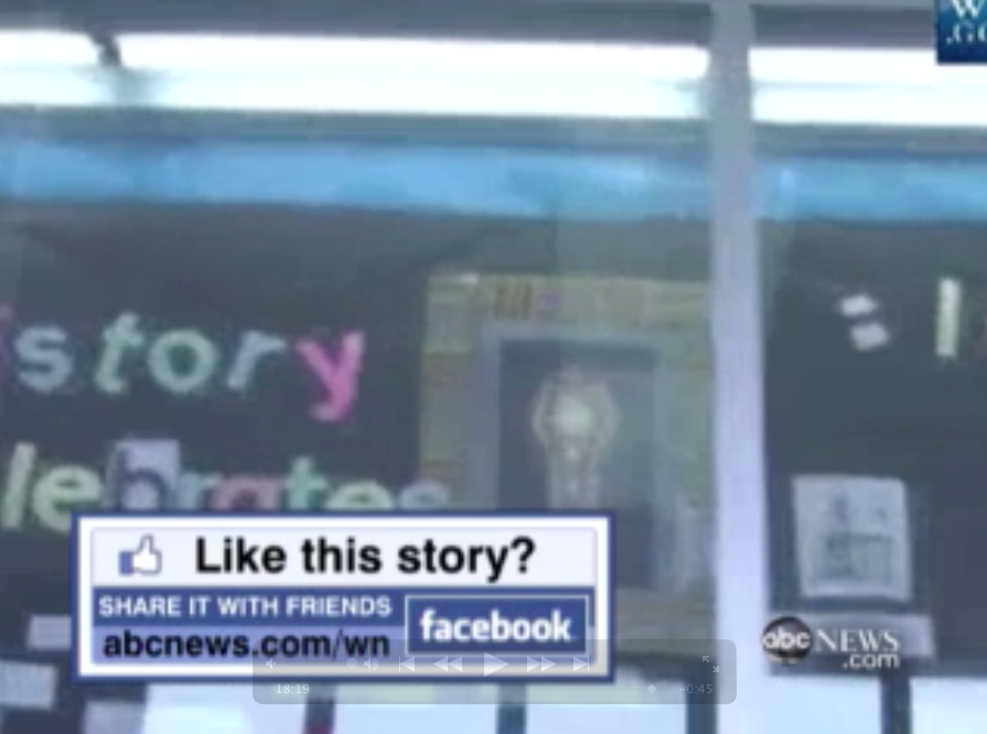 아까 ABC월드뉴스를 보다가 살짝 놀랐다. ABC뉴스 리포트중에 페이스북의 Like버튼이 등장하는 것이 아닌가? (물론 직접 클릭할 수 있는 것은 아니고 홈페이지접속을 유도하고 있지만…)
