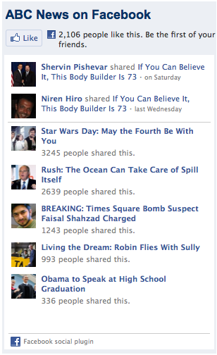 ABC뉴스는 벌써 탑페이지에 이런 페이스북 소셜플러그인까지 집어넣었다. 맨 위의 2명은 내 지인이다.