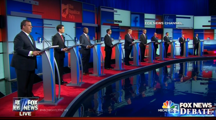 나는 항상 미국의 대통령선거는 거대한 미디어쇼라고 느끼고 있다. 미국의 미디어들은 대선과정을 통해서 높은 열독률과 시청률을 올리고 그를 통해서 돈을 번다. 지난 6일의 공화당 대선후보 토론회도 마찬가지였다. (아래 사진들은 폭스뉴스의 대선토론회를 보도한 NBC나이틀리뉴스와 CBS모닝쇼에서 캡쳐한 것들이다.)