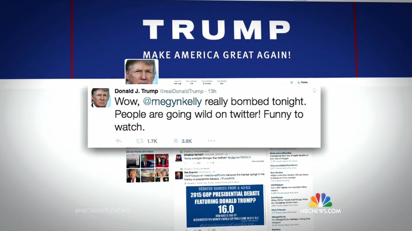 그리고 그 썰전은 토론회가 끝나도 그대로 온라인으로 이어진다. 각 후보는 소셜미디어를 통해서 자신의 생각을 쏟아낸다. 사회자인 메간 켈리의 터프한 질문에 일격을 당한 도널드 트럼프는 분을 삭이지 못했는지 새벽 3시에 트윗을 쏟아냈다.