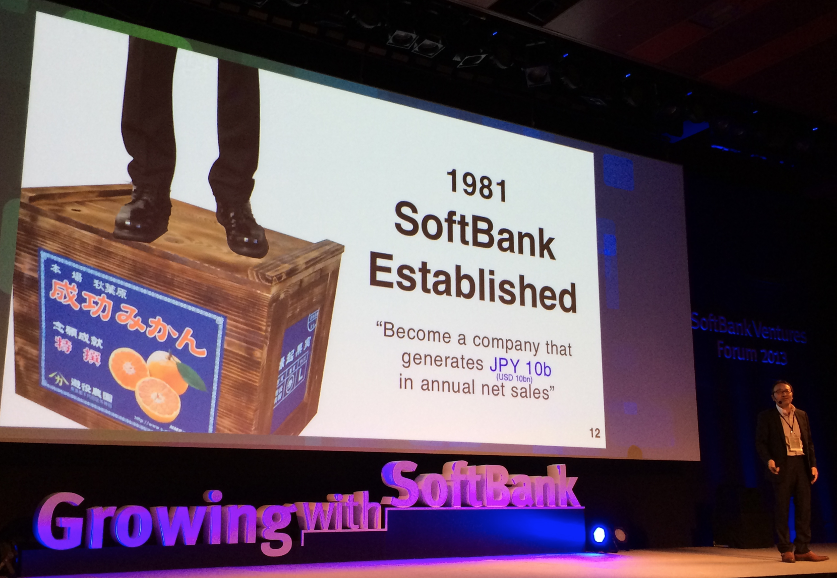 그래서 소프트뱅크의 직원수는 지금 10만명이 넘는다. 손정의 사장은 여전히 귤상자위에 서있다.