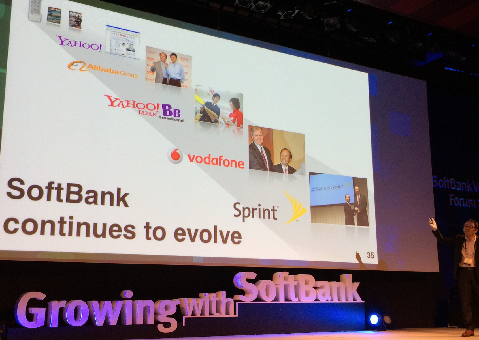 손정의사장의 승부사적 기질이 이 한장의 슬라이드에 잘 나타나 있다. 미국 야후에의 투자, 중국 알리바바에의 투자, 일본을 브로드밴드 대국으로 만든 야후BB사업, 도박과도 같았던 보다폰 인수를 통한 이동통신사업에의 진출, 그리고 최근의 미국 스프린트인수건까지.