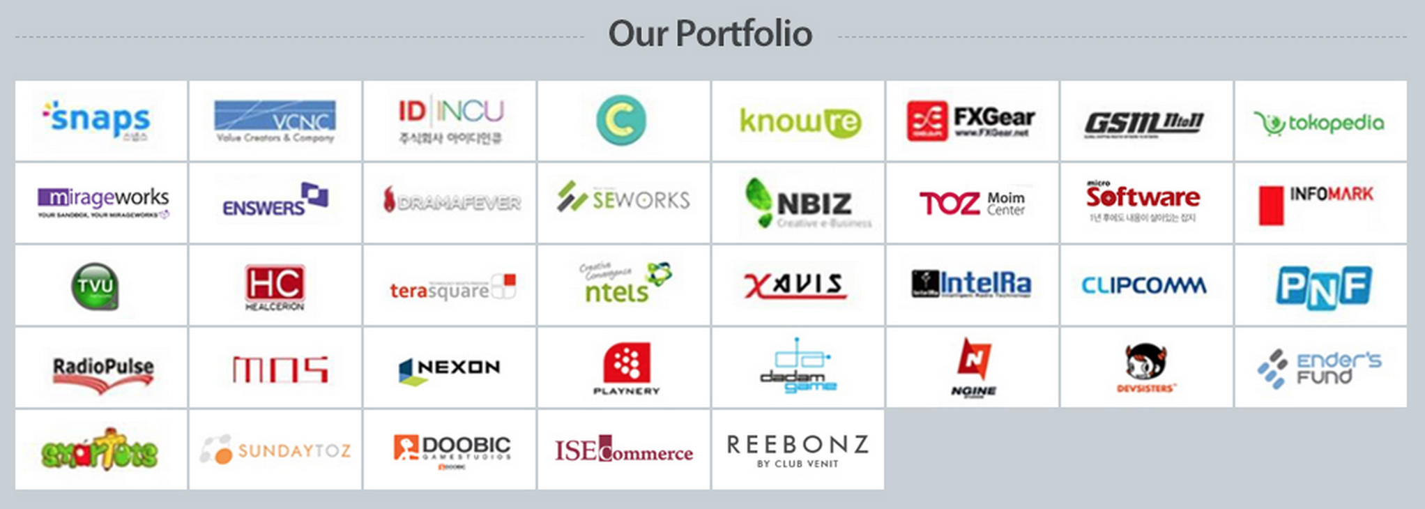 이스트벤처스의 스타트업 포트폴리오.