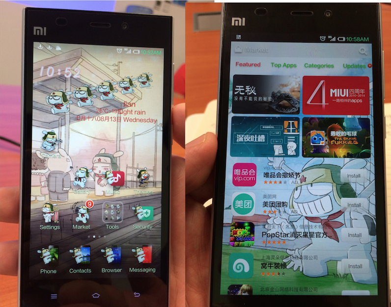 옆에 있는 플래텀 조상래대표의 MI3폰을 좀 만져봤는데 꽤 디자인, 사용성도 좋고 샤오미 앱스토어가 쓰임새좋게 잘 만들어져 있다고 느꼈다.