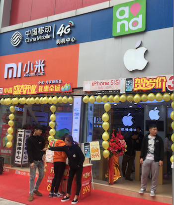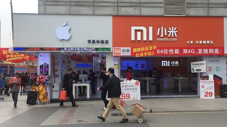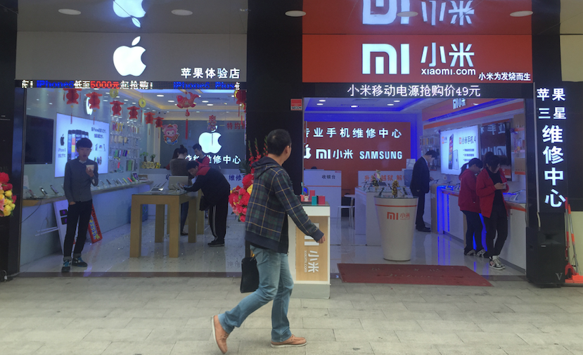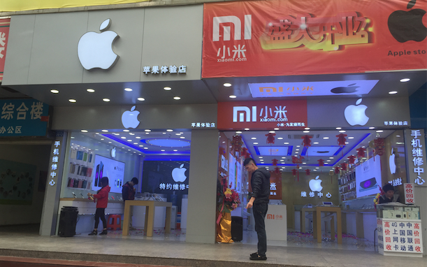 여기서 조금만 걸어다녀보면 애플과 샤오미사이에 치열한 전쟁이 벌어지고 있다는 것을 알 수 있다.
