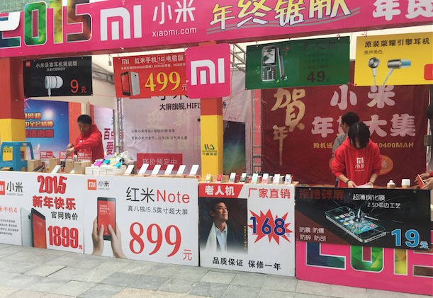 심지어는 저렇게 샤오미를 가두판매하는 곳도 많았다.