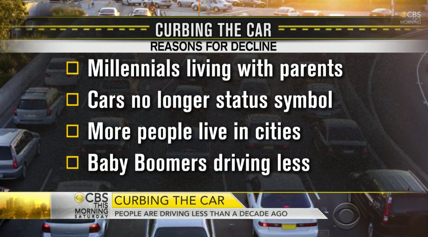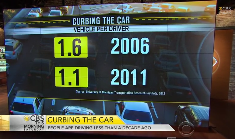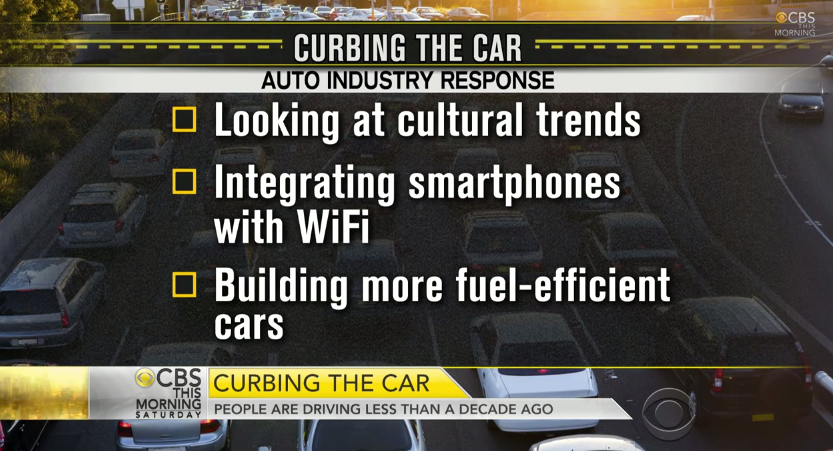 위는 미국인들의 운전감소현상을 다룬 CBS모닝쇼 꼭지다.