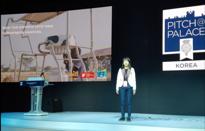 요크의 장성은 대표. 태양광 에너지 배터리 충전시스템 솔라카우를 선보였다.