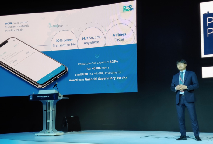 블록체인 기반 해외송금 서비스인 모인의 발표다.