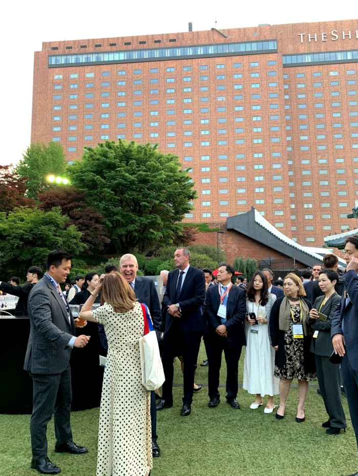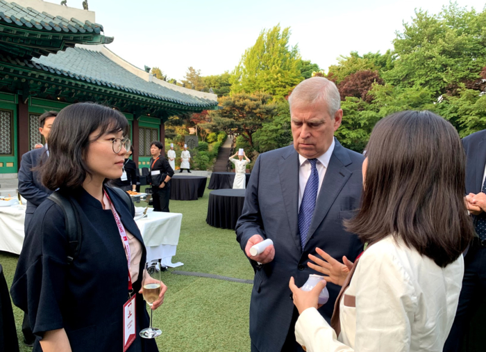 행사가 끝난뒤 신라호텔 영빈관 뜰에서 음료와 간단한 핑거푸드가 제공됐다. 이 자리에도 앤드류왕자는 바로 오셨고 스타트업 창업자들이 줄을 서서 인사하고 대화를 나눴다.