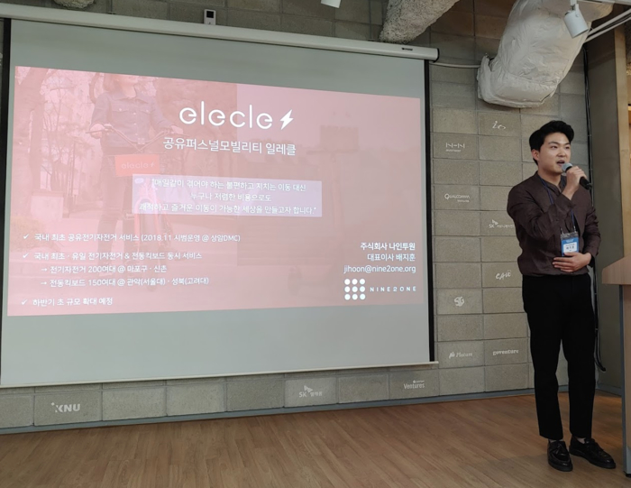 마포구-신촌에서 전기자전거, 서울대-고려대에서 전동킥보드 서비스를 하고 있는 일레클의 배지훈대표. 쏘카가 투자한 회사다.