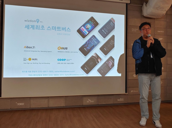 버스공유 플랫폼 ‘e버스’를 제공하는 위즈돔 한상우 대표. 2010년 버스 승차공유서비스를 시작한 스마트모빌리티의 선구자. 이미 상당한 규모로 앱기반 버스 승차 서비스를 제공중.