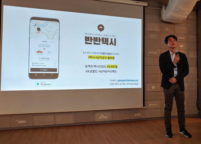 택시를 잡기 힘든 심야에 같은 방향으로 가는 승객들의 자발적 택시 동승을 중개하는 플랫폼 ‘반반택시’를 제공하는 코나투스 김기동 대표. 택시에도 좋고, (심야에 택시를 잡기 힘든) 승객들에게도 좋은 솔루션인데 호출료 인상을 요구했다가 규제샌드박스에서 불허되어 오히려 화제가 된 케이스.