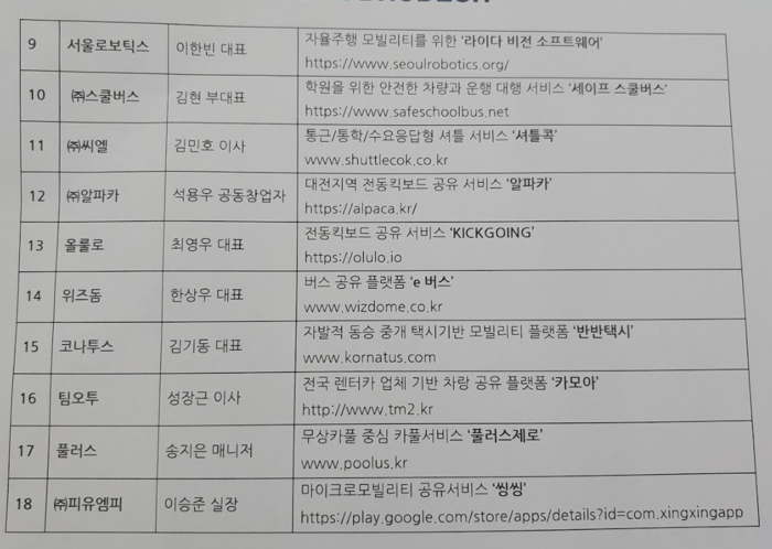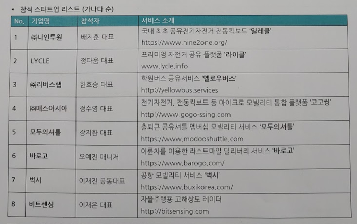 스얼 모빌리티 프레스데이 17개 스타트업 소개