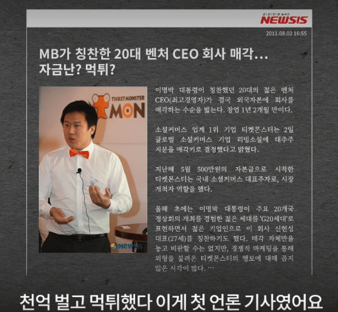 뭔가를 이뤄낸 창업가를 응원하기보다 비난하고 깎아내리는 분위기도 아쉽다. 25세에 한국에 돌아와 티켓몬스터를 창업한 신현성대표는 이런 얘기를 했다. 폭풍성장을 해서 회사를 미국 리빙소셜에 매각했는데 처음 나온 기사가 “천억 벌고 먹튀했다”여서 속상했다는 것이다.
