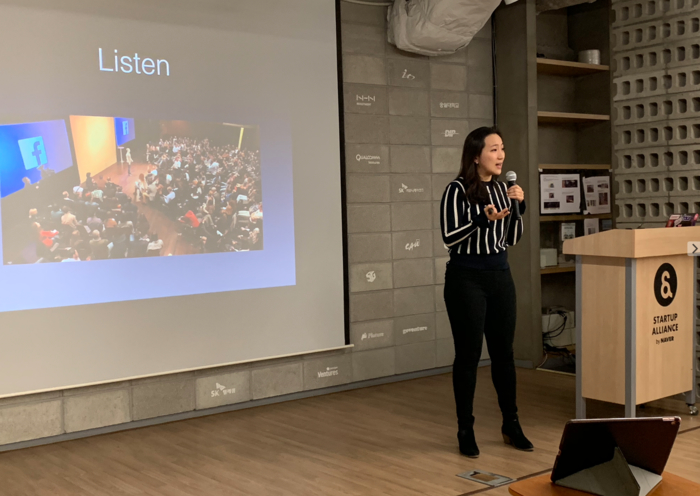 페이스북의 주희상님. 시간을 많이 초과하셔서 슬라이드 내용을 많이 줄이셔야 한다는 피드백을 받았다.