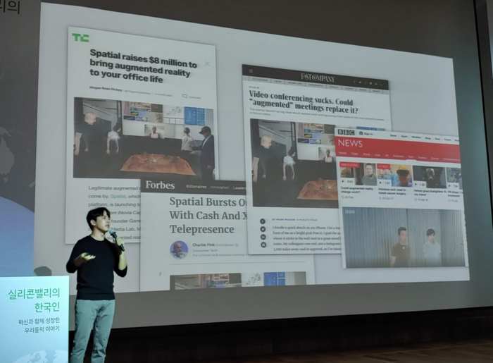 첫 번째 세션에서는 미국 시장에서 스타트업을 창업해 주목받고 있는 창업가 세 명이 연사로 나섰다. 원격공간을 증강현실로 연결해 새로운 방식의 협업을 가능케 하는 스페이셜(Spatial)의 이진하 CPO, 국내 스타트업을 실리콘밸리 기업에 매각한 사례로 유명한 파이브락스(5Rocks) 창업자로 현재는 머신러닝을 이용한 기업용 업무 자동화 시스템을 만드는 올거나이즈(Allganize) 이창수 대표, 미국의 한인들에게는 유명한 비디오스트리밍 서비스 온디맨드코리아(OnDemandKorea)와 온디맨드차이나(OnDemandChina)를 북남미 포함 27개국에 운영하는 ODK미디어(ODK Media) 차영준 대표가 각자의 생생한 창업 경험담을 전했다.