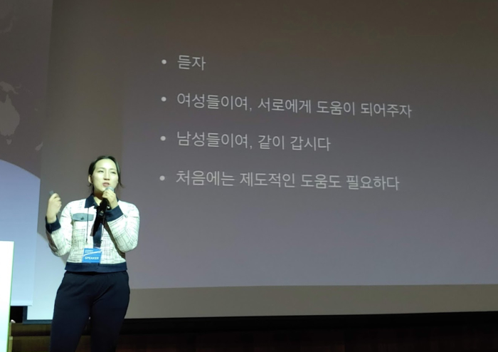 마지막 세션에는 미국의 테크기업에서 일해온 세 명의 연사가 각자의 커리어 경험을 공유했다. 음악 스트리밍 서비스 스포티파이(Spotify)에서 유저 리서처(User Researcher)로 일하고 있는 백원희 님은 스포티파이의 독특한 일하는 문화를, 애플과 테슬라 등 다양한 테크기업에서 엔지니어로 일한 김동욱 매니저는 혁신기업의 특징과 공통점을 전했다. 이지온 글로벌 박정준 대표는 아마존에서 12년간 근무하며 겪은 경험과 커리어 개발 노하우에 대해 이야기했다.