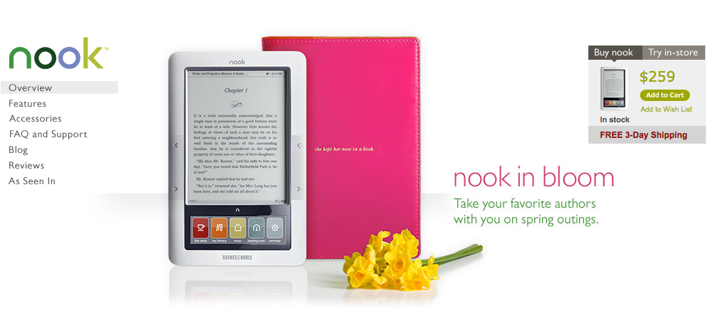 Nook은 가격을 아마존 킨들과 같은 $259로 설정했다. 하지만 경쟁은 쉽지 않을 것으로 보인다. 당장 아이패드 출시이후 아마존은 킨들하드웨어 가격을 $100이하로 낮추지 않으면 경쟁력이 없다는 말까지 나올 정도다.