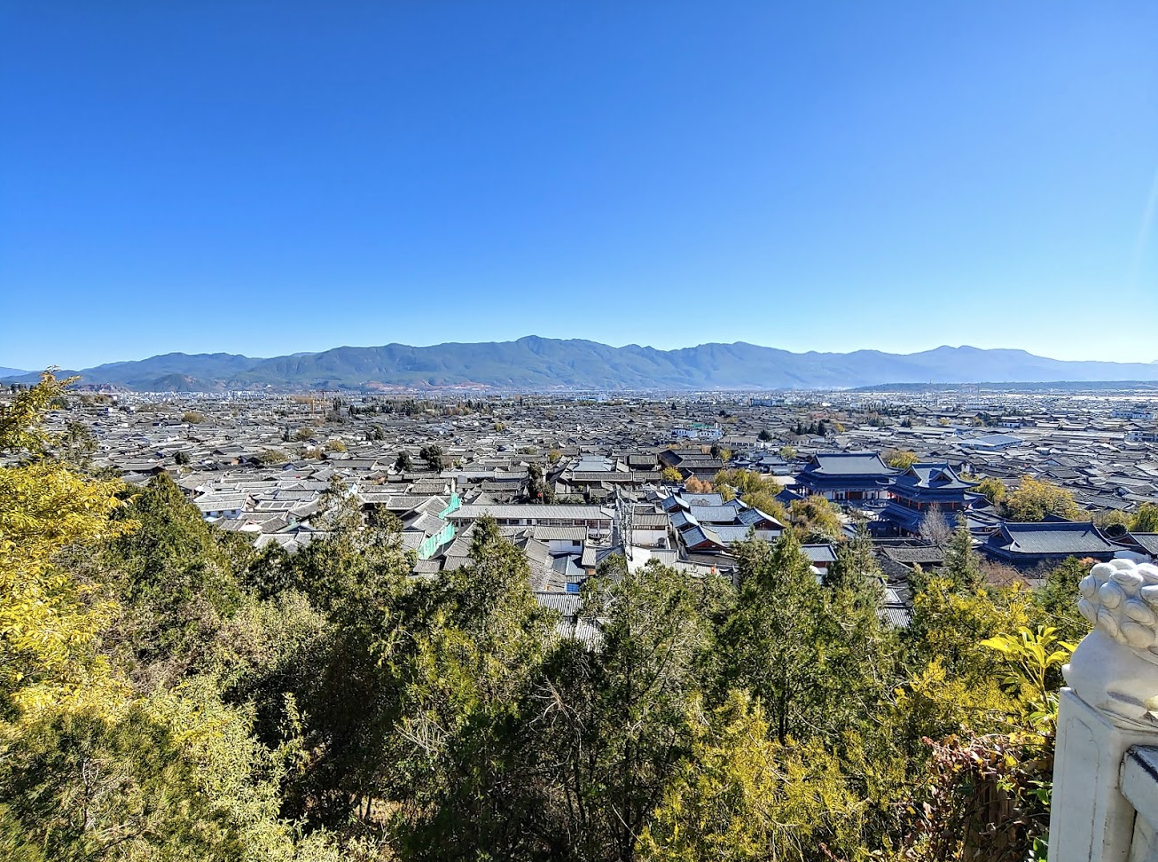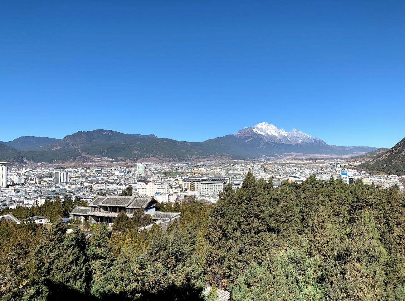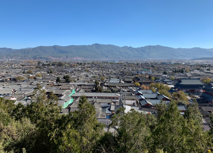 옥룡설산쪽 전망. 고성 바깥 현대적인 리장 시가지가 보인다.