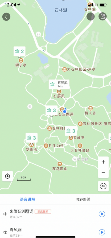 이렇게 석림내에서 주요 포인트를 알려주고 그곳을 선택하면 더 자세한 설명이 나온다. 그리고 그것을 음성으로 읽어준다.