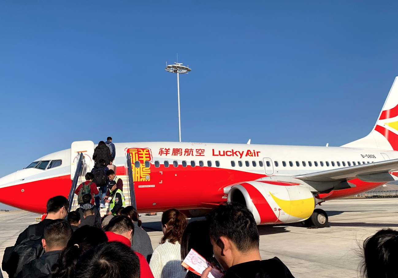 윈난성의 저가항공사인 럭키에어를 타고 이제 리장으로 출발. 1시간 남짓한 비행이다.