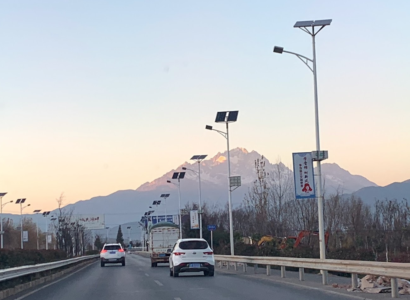 작고 깔끔한 공항에서 디디추싱을 불러서 타고 시내로. 저멀리 옥룡설산이 보이는데 마치 록키마운틴이 보이는 콜로라도 같은 분위기.
