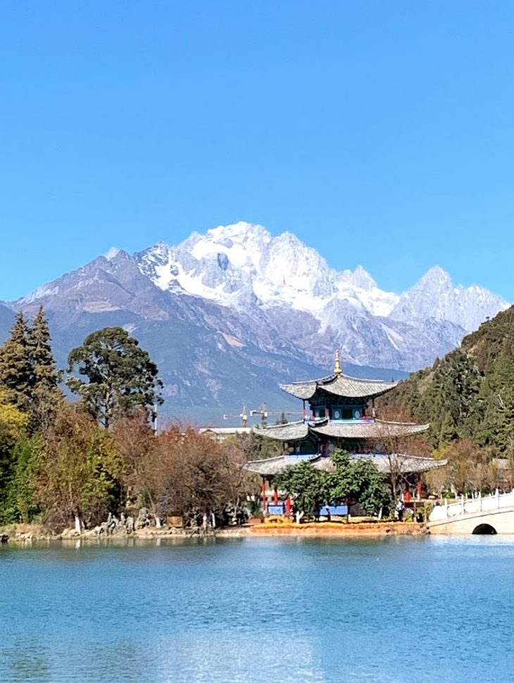 날씨가 너무 좋아서… 공원에서 사진을 찍으니 옥룡설산을 배경으로 그림같은 사진이 나온다.
