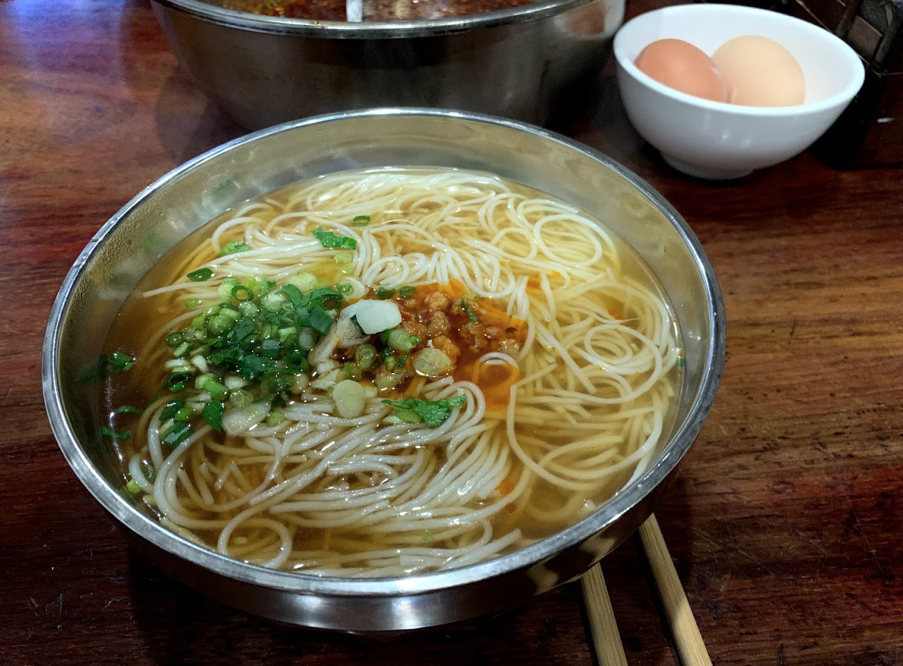 객잔에서 준 아침 식사는 미시엔이다. 한국의 잔치국수와 너무 비슷한 맛.
