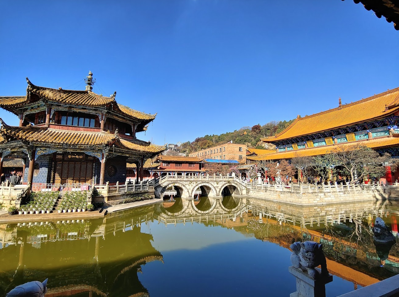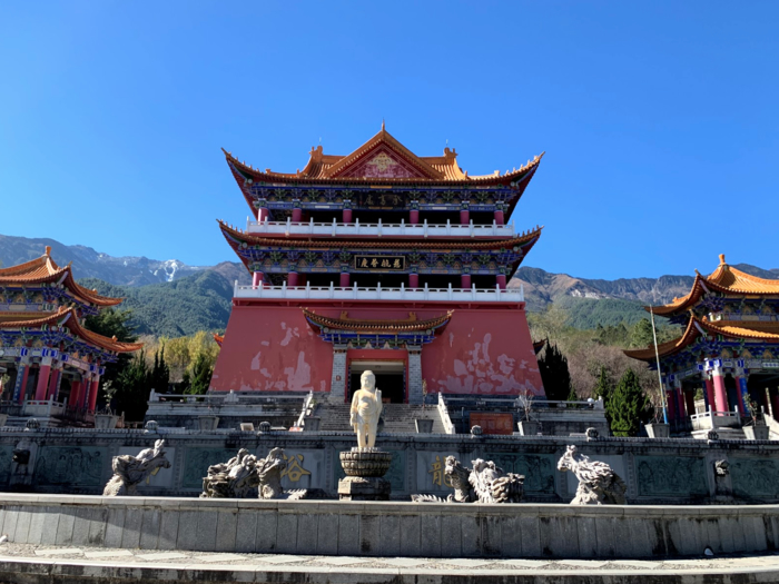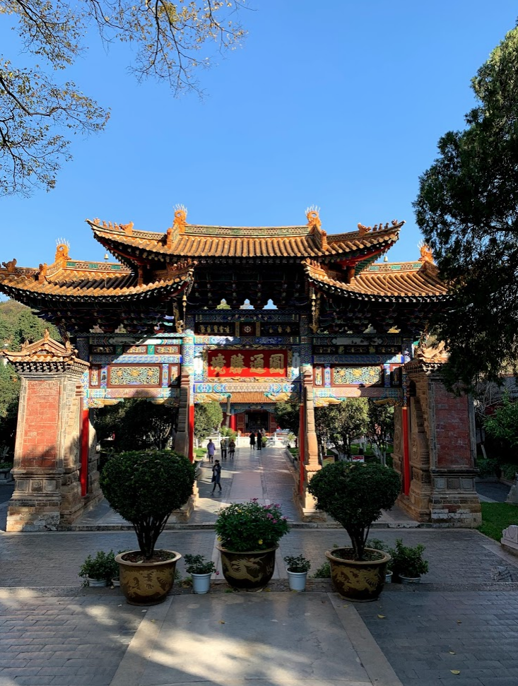 쿤밍 시내에 있는 원통사 사찰. 쿤밍은 봄의 도시라 불리는 곳. 베트남 바로 위에 있는데도 해발 1800미터에 위치해 있어 12월인데도 최저기온이 3~4도, 낮기온이 16~17도. 여름에도 최고기온이 20도라고. 캘리포니아 같은 날씨.