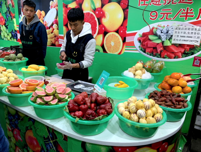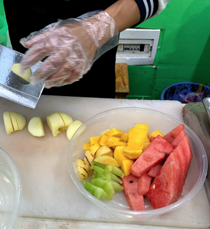 여기에도 과일가게가 많아서 한번 사먹어봤다. 프라스틱 바구니에 과일을 담으면 먹기 좋게 잘라준다. 그리고 무게를 재서 돈을 내면 된다.