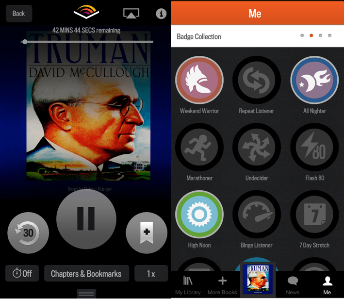 어쨌든 아이폰을 위시로 한 스마트폰의 대중화 덕분에 미국의 오디오북시장은 완전히 자리잡았다. 미국의 오디오북시장규모는 약 1조원가량된다고 한다. 이제는 상상할 수 없이 긴 책도 축약없는 Unabridged버전으로 나온다. 지금 내가 읽고 있는 해리 트루먼 전기는 총 54시간분량이다. 요즘 웬만한 책은 모두 오디오북버전이 (전자책버전과 함께) 같이 발매된다. 이제는 스마트폰에서 오디오북을 다운로드받는 사람들이 늘어나면서 오디오북이 더욱 대중화되고 있는 것이다.