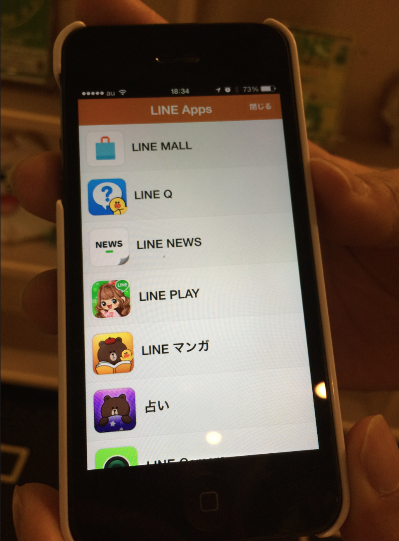 또 하나 놀란 것은 모바일메신저 라인의 인기다. 네이버의 일본법인인 라인주식회사(구 NHN재팬)에서 2011년 6월 내놓은 라인은 3년이 채안되는 사이에 전세계에서 4억명의 가입자를 모았다. 그중 5천만명 이상이 일본의 가입자다. 1억3천만명의 인구를 가진 일본의 스마트폰 보급율은 약 60%인데 그렇다면 일본의 성인 스마트폰사용자의 대부분이 라인을 사용하고 있다는 결론이다. 한국의 카카오톡처럼 라인이 일본의 국민메신저가 된 것이다.