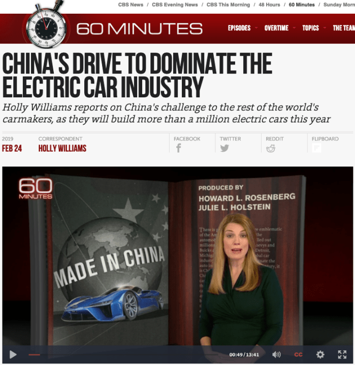 지난해 9월 미국 나스닥에 상장한 중국의 테슬라로 불리는 NIO가 미국 CBS방송의 간판 시사프로그램 60 미닛에 최근 소개됐다.