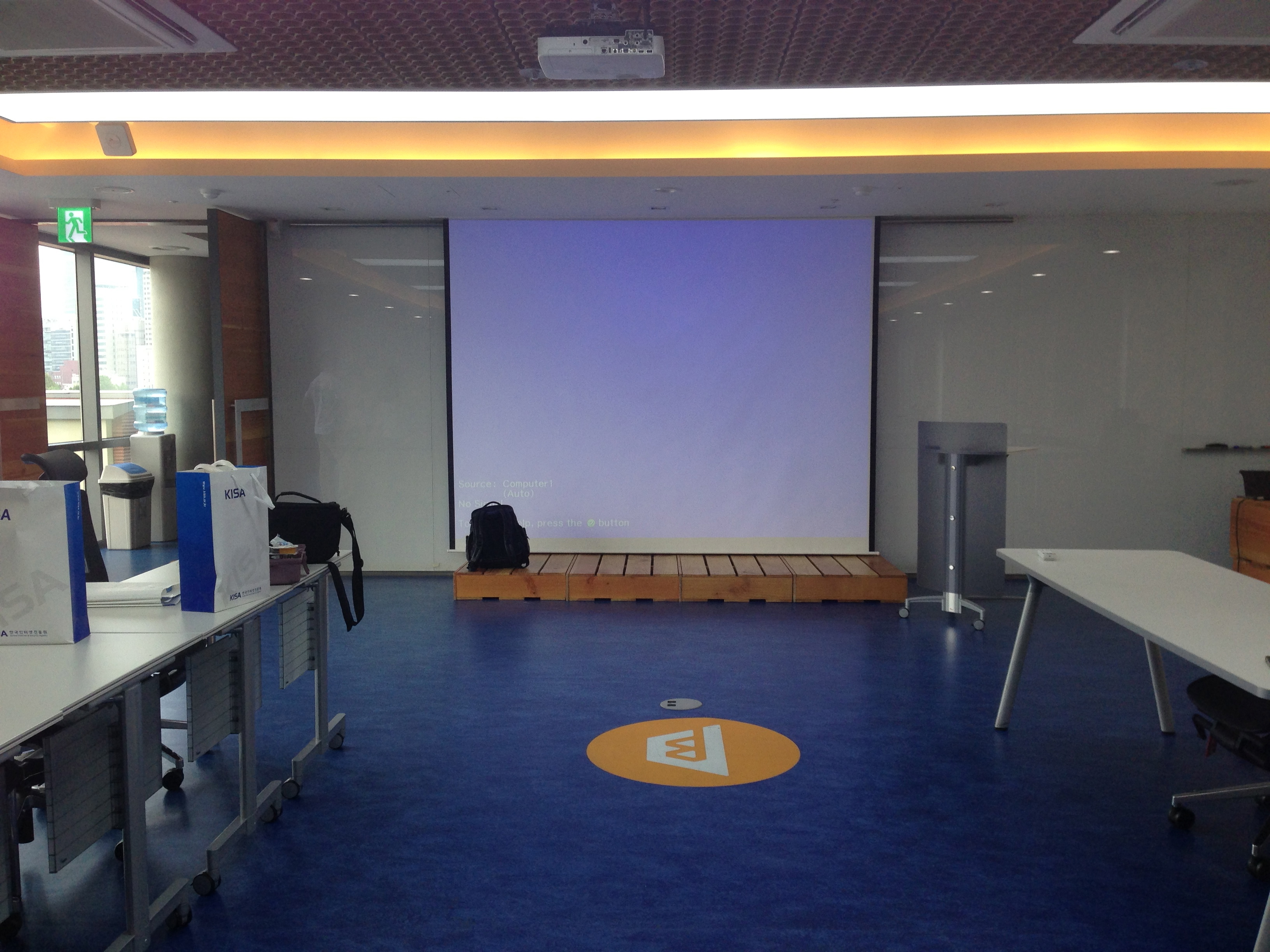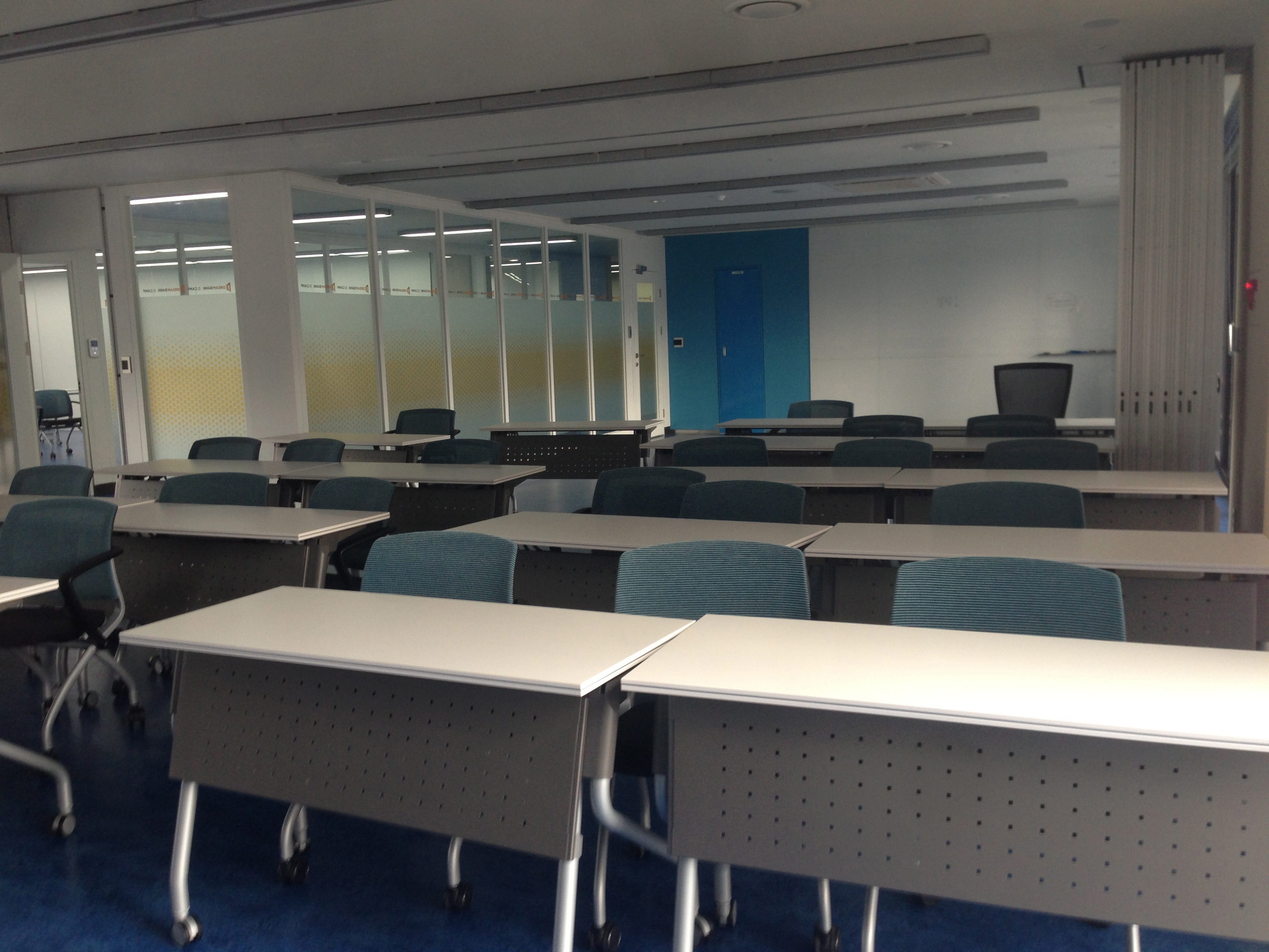 5층에는 스타트업이 입주해 일할 수 있는 공간도 있다. 위에 나온 팀은 Smiley Family다. 전망이 죽인다. 그리고 작은 소규모 미팅을 할 수 있는 공간이 마련되어 있다. 칸막이를 붙였다 떼었다 하면서 이벤트참석인원에 따라 공간조절이 자유롭게 만들었다. 인테리어에 비용을 아꼈지만 반면 책상, 의자 등 가구는 비싼 것을 썼다고 한다.