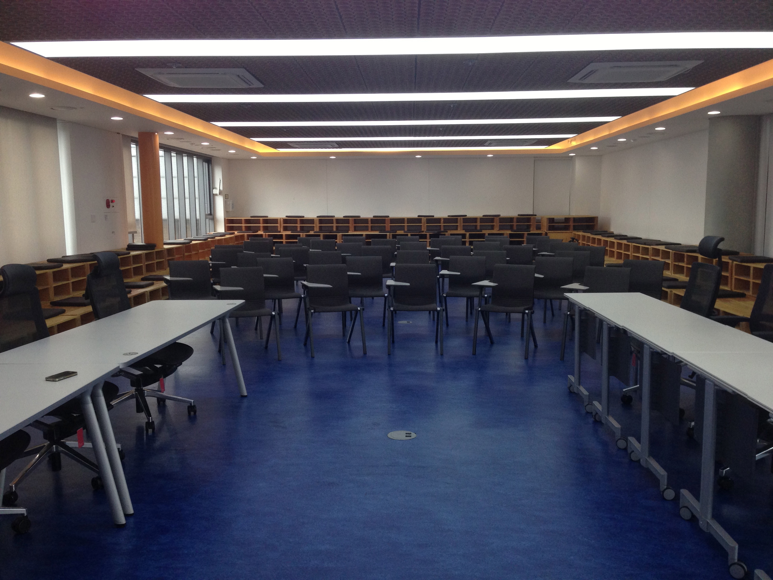 또 인상적인 것은 6층의 다목적 홀이다. 가운데 놓인 의자외에도 양옆으로 앉을 자리와 방석이 가득 놓여있어서 2백명은 거뜬히 들어갈 것 같다. D.캠프를 방문한 많은 명사들이 여기서 강연을 갖는다.