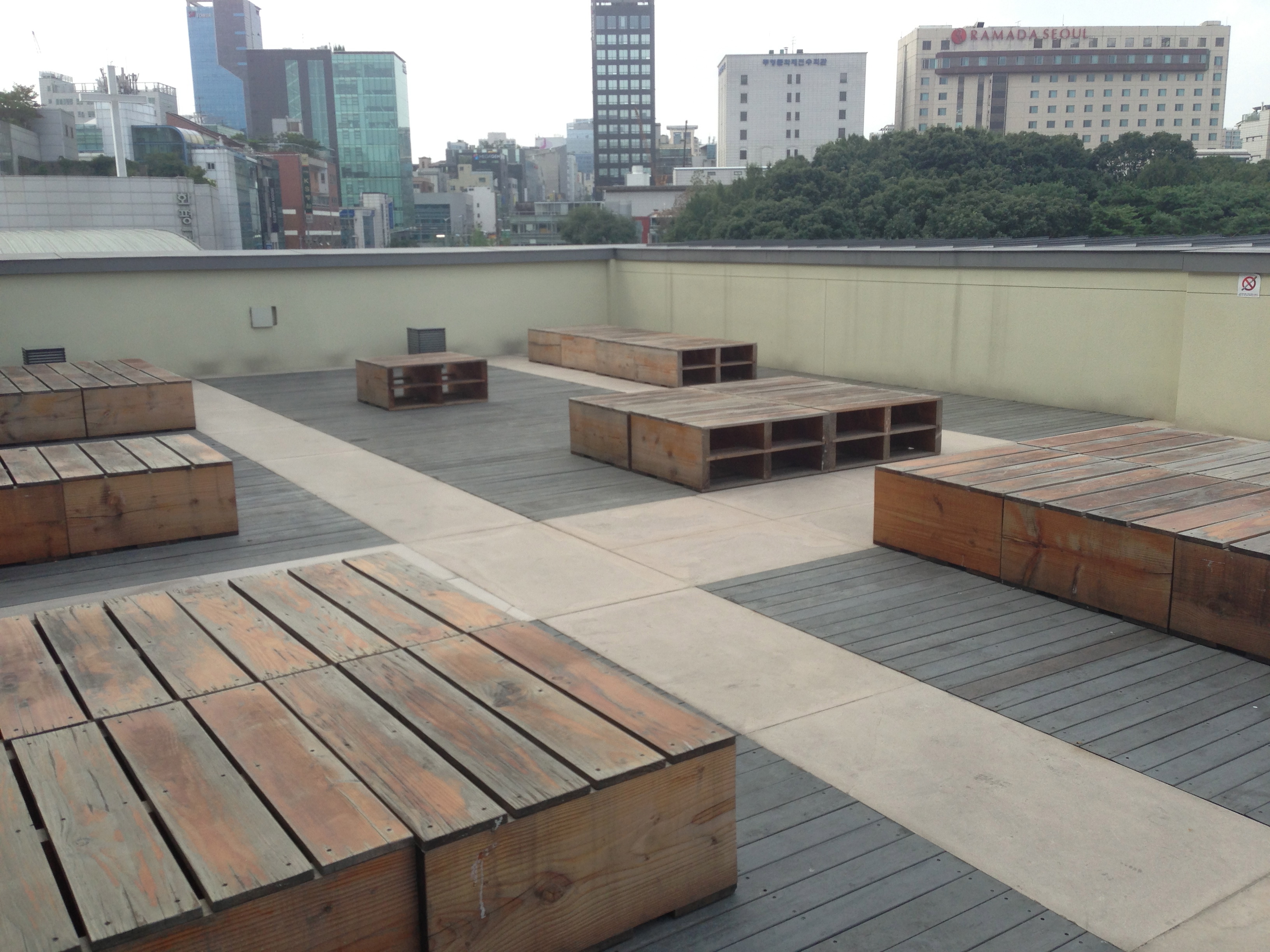 위 다목적홀 바깥쪽에는 이런 멋진 테라스가 있어서 이벤트뒤에 뒷풀이를 하기 좋게 되어 있다.