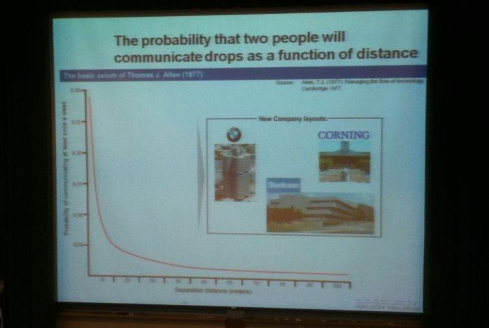 교수가 왜 이 이야기를 하냐하면 오피스빌딩의 구조나 위치가 직원들의 상호친밀도에 큰 영향은 준다는 것이다. 즉,