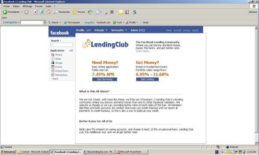 지금은 6조가 넘는 기업가치의 회사가 됐지만 2007년 렌딩클럽도 아주 미약하게 시작했다. 2007년 페이스북위에서 투자자와 돈을 빌리고자 하는 사람들을 중계해주는 회사로서 시작했다.